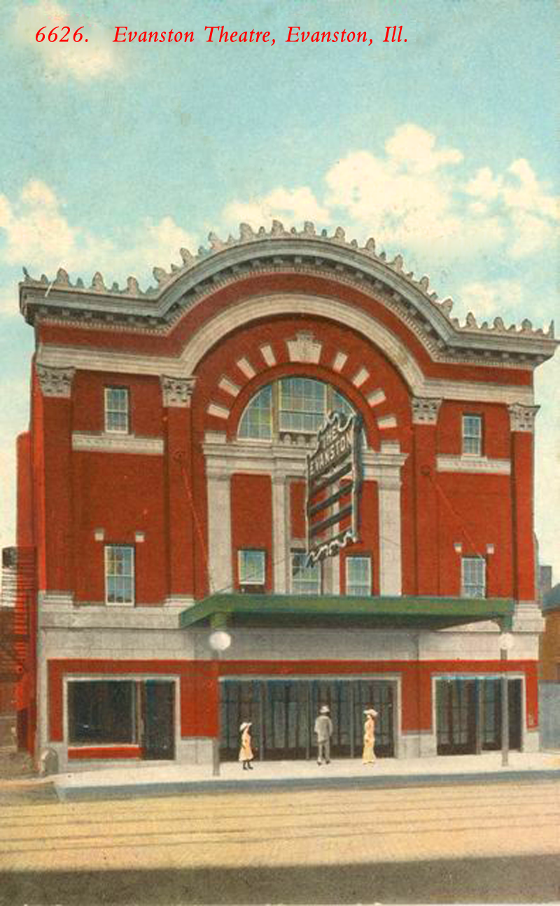 At 1560 Sherman Avenue, where James Carney had lived since 1884 in the old Willard House. The Evanston Amusement Company built the Evanston Theatre in 1910-11. Designed by the Chicago architect John Edmund Oldaker Pridmore (1867-1940), the $65,000 ($2,058,000 today) theatre opened on August 21, 1911.